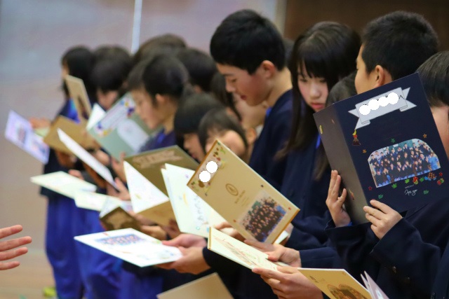 6年生一人一人にプレゼント贈呈
