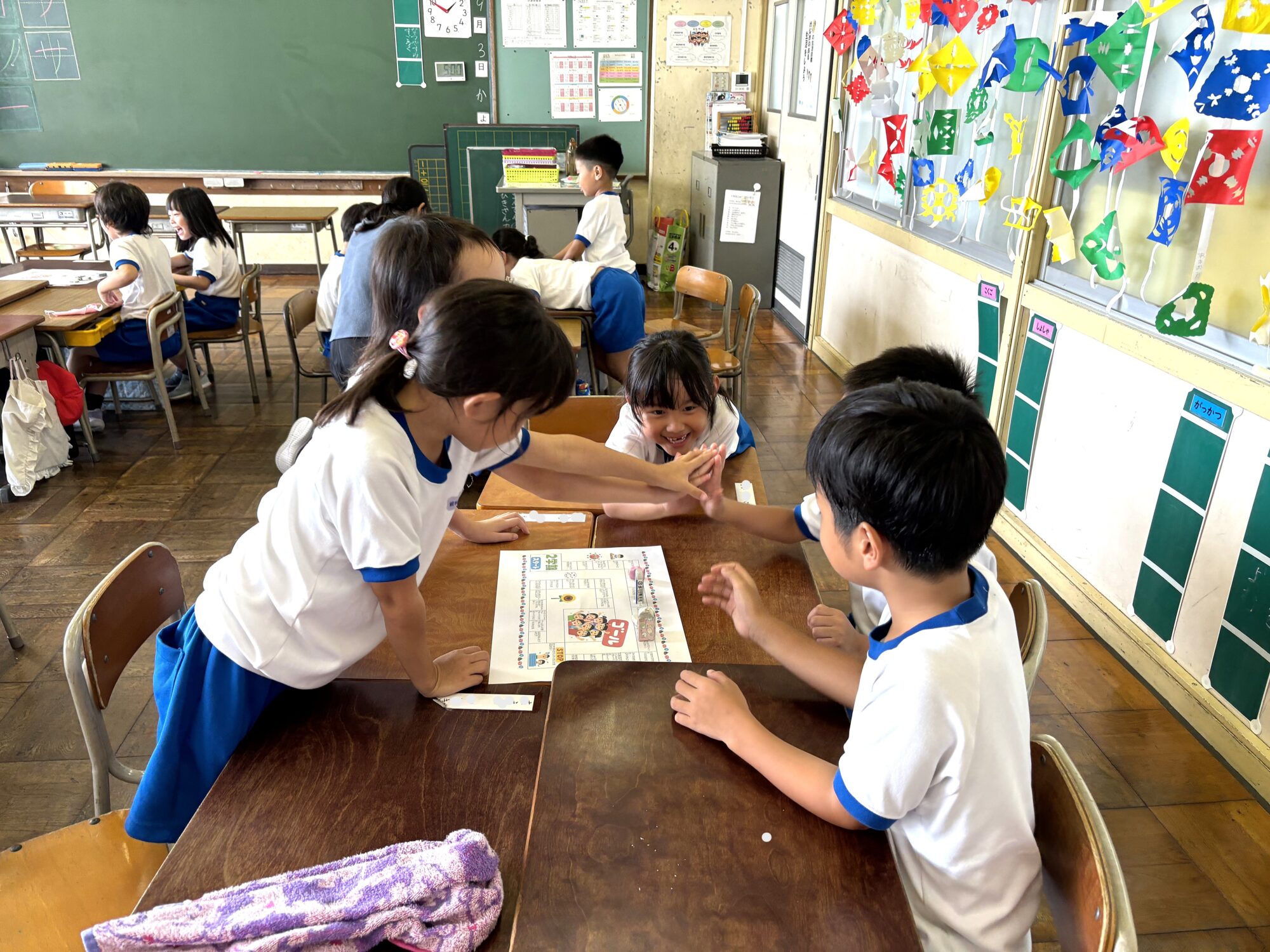 1年生の教室では、先生手作りのすごろくを使った活動中でした。