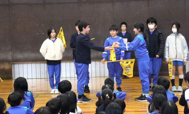 児童会長が代表で伝えました。