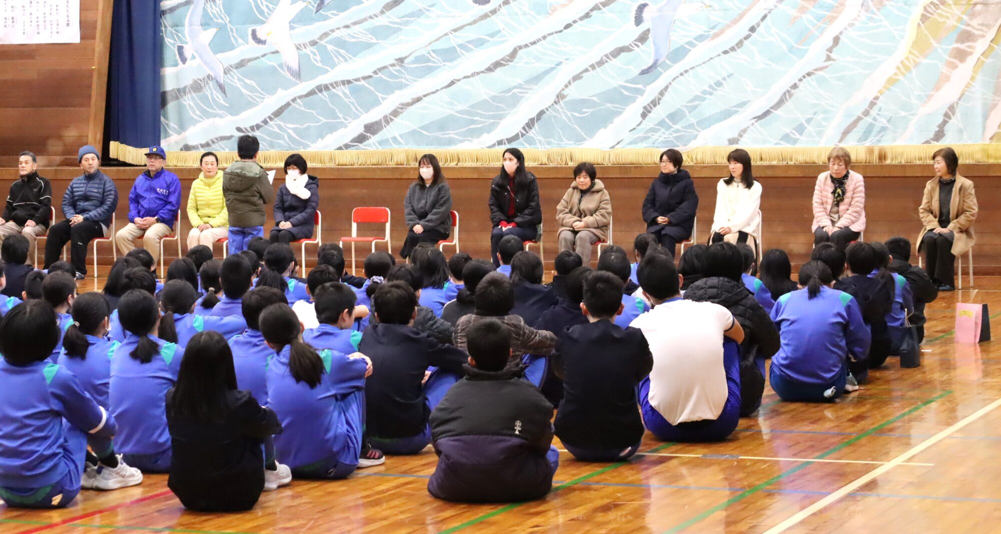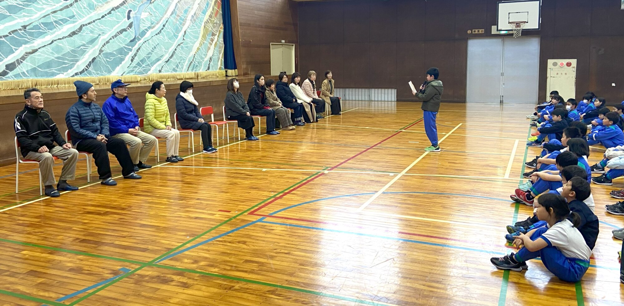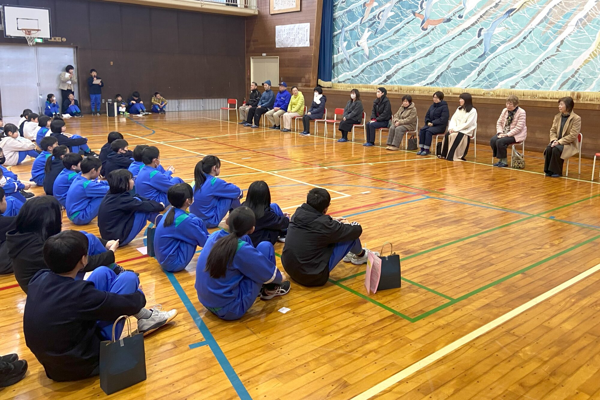 朝早い時間でしたが、体育館に集合していただきました。