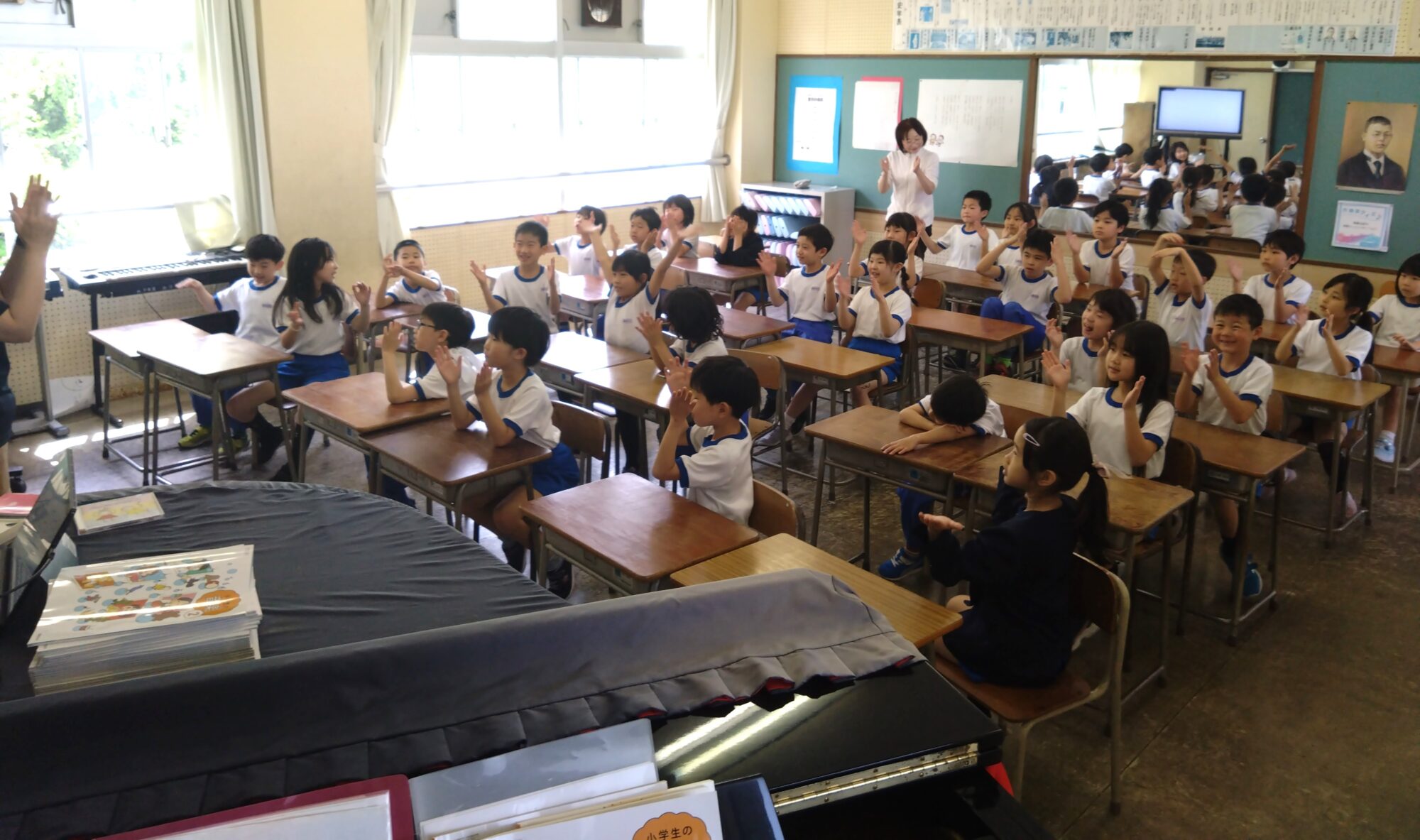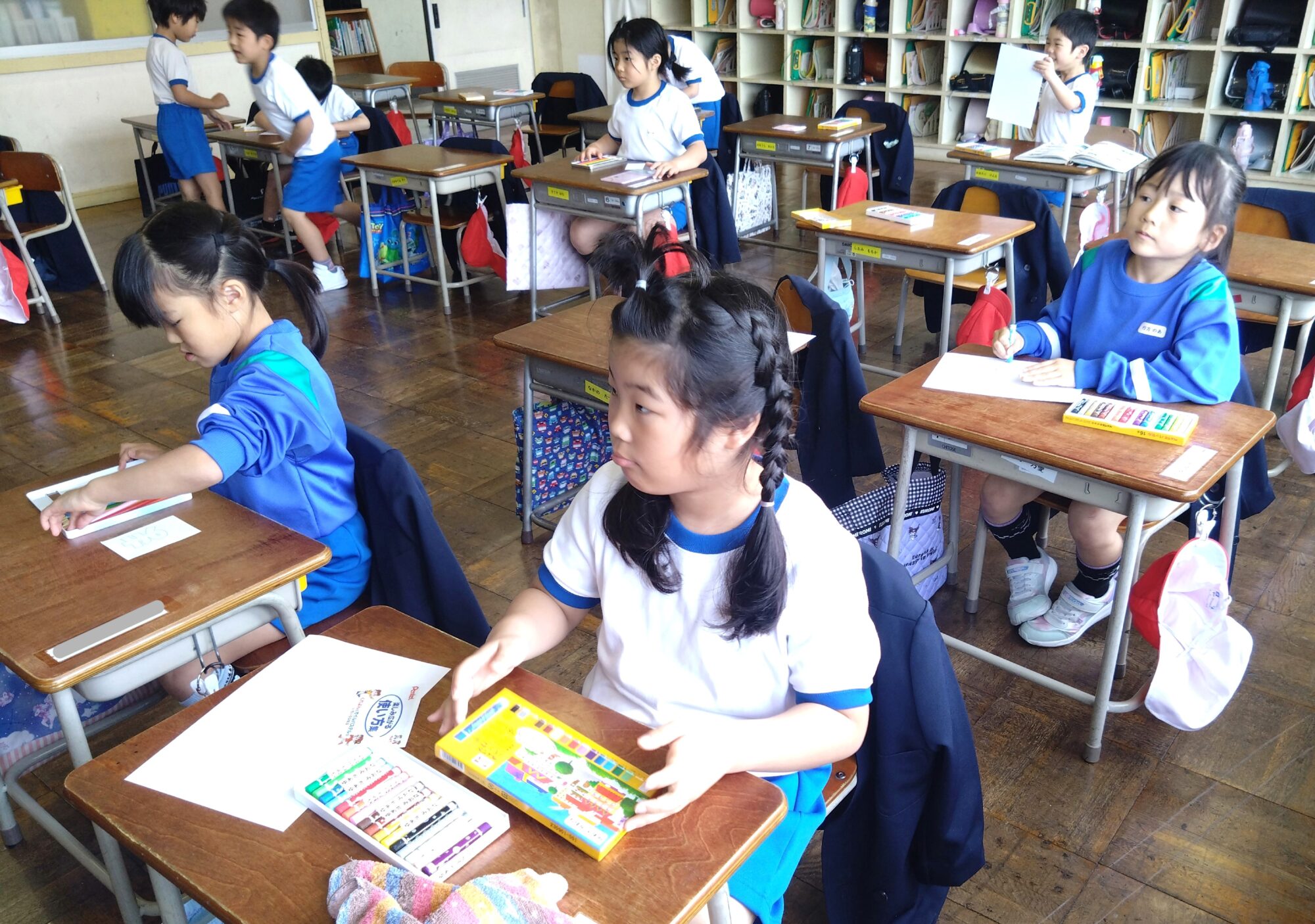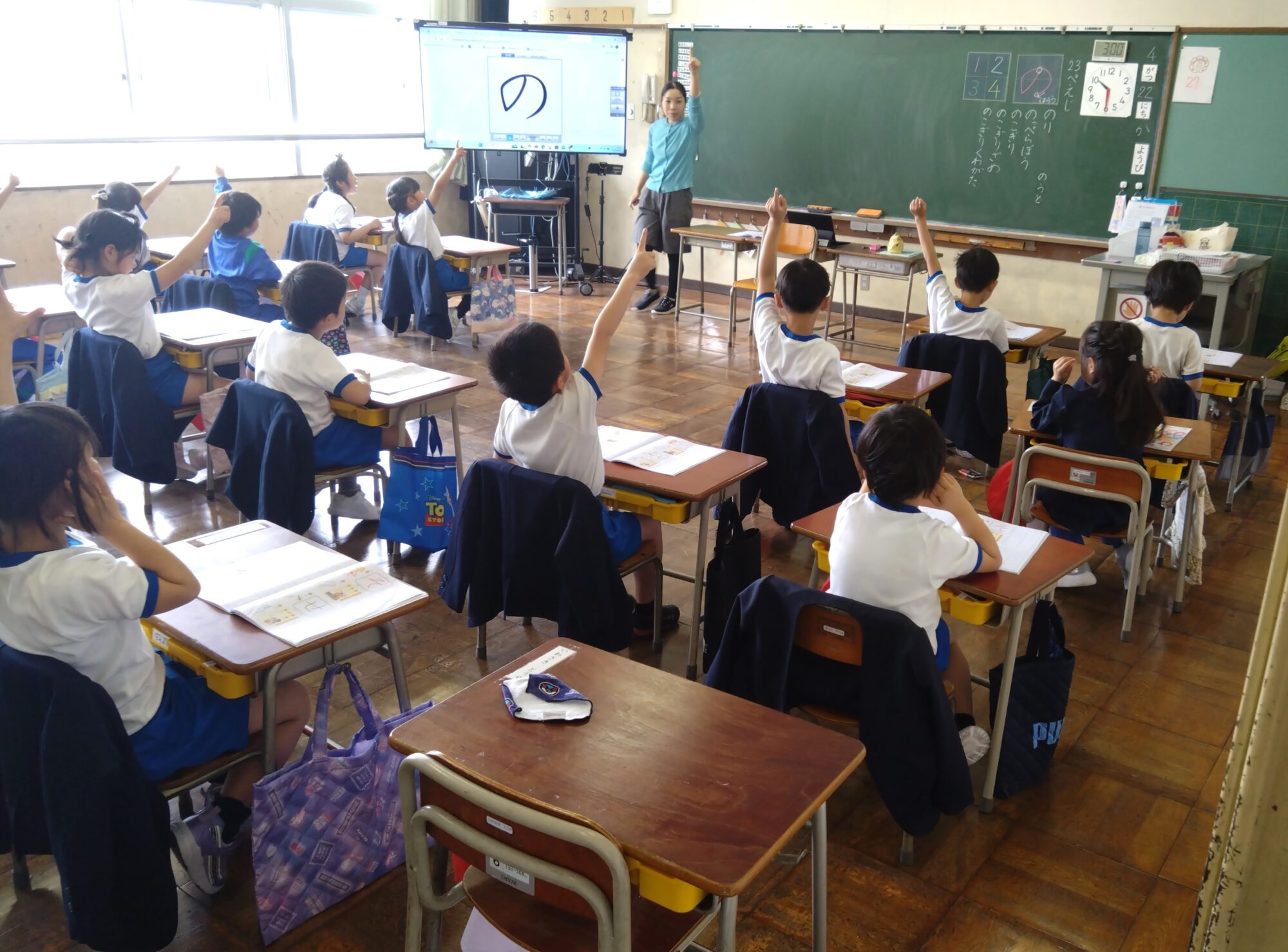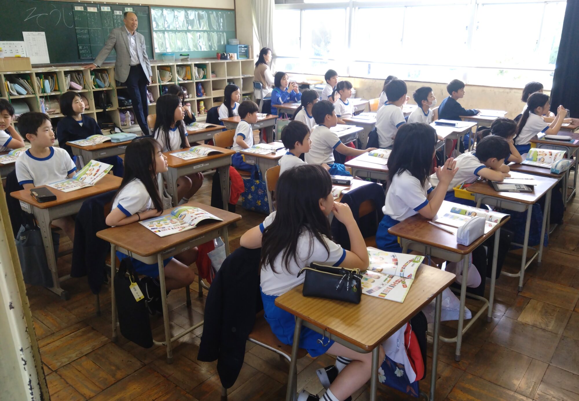 今日の3限目、各園や幼稚園の先生方が新入生の様子を参観に来られました。