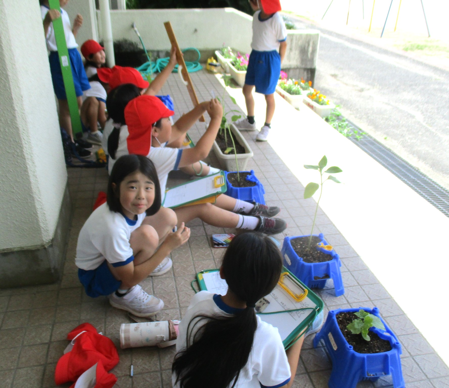 毎朝、登校後の水やりが子供たちのルーティーンになっています。