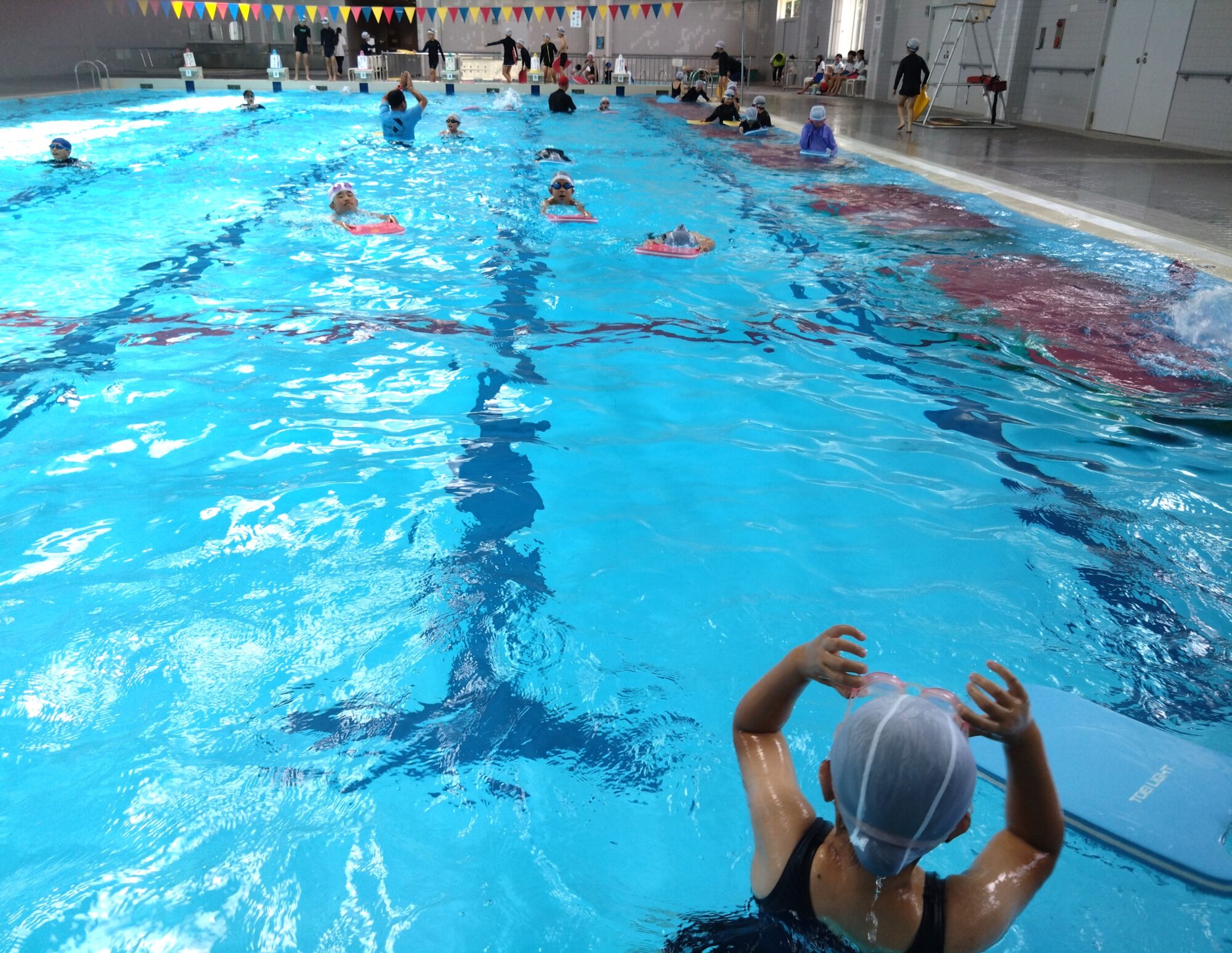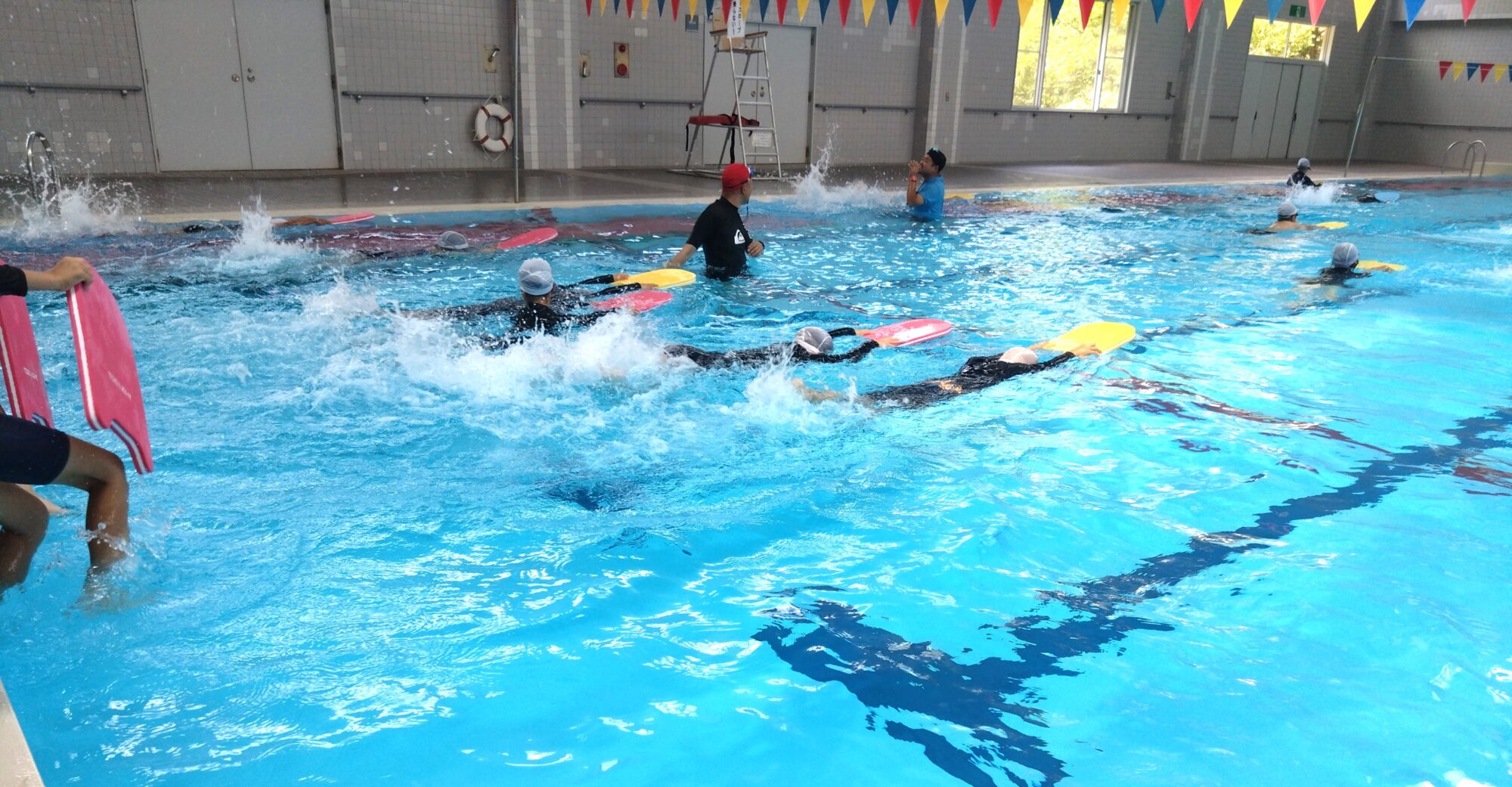 先生の説明をしっかり聞いて、泳ぎを確認します!