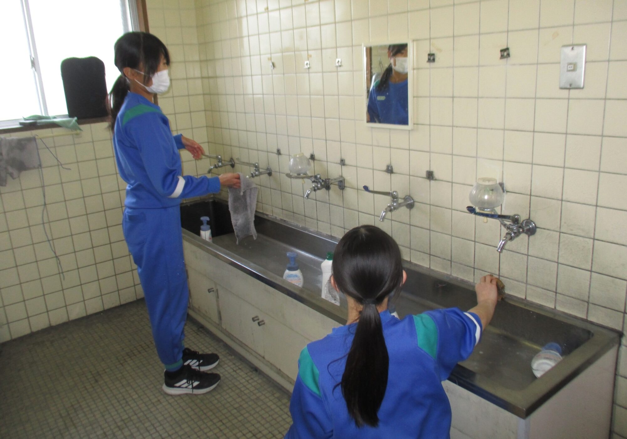 家庭科の授業では、6年間お世話になった校舎の清掃活動を!