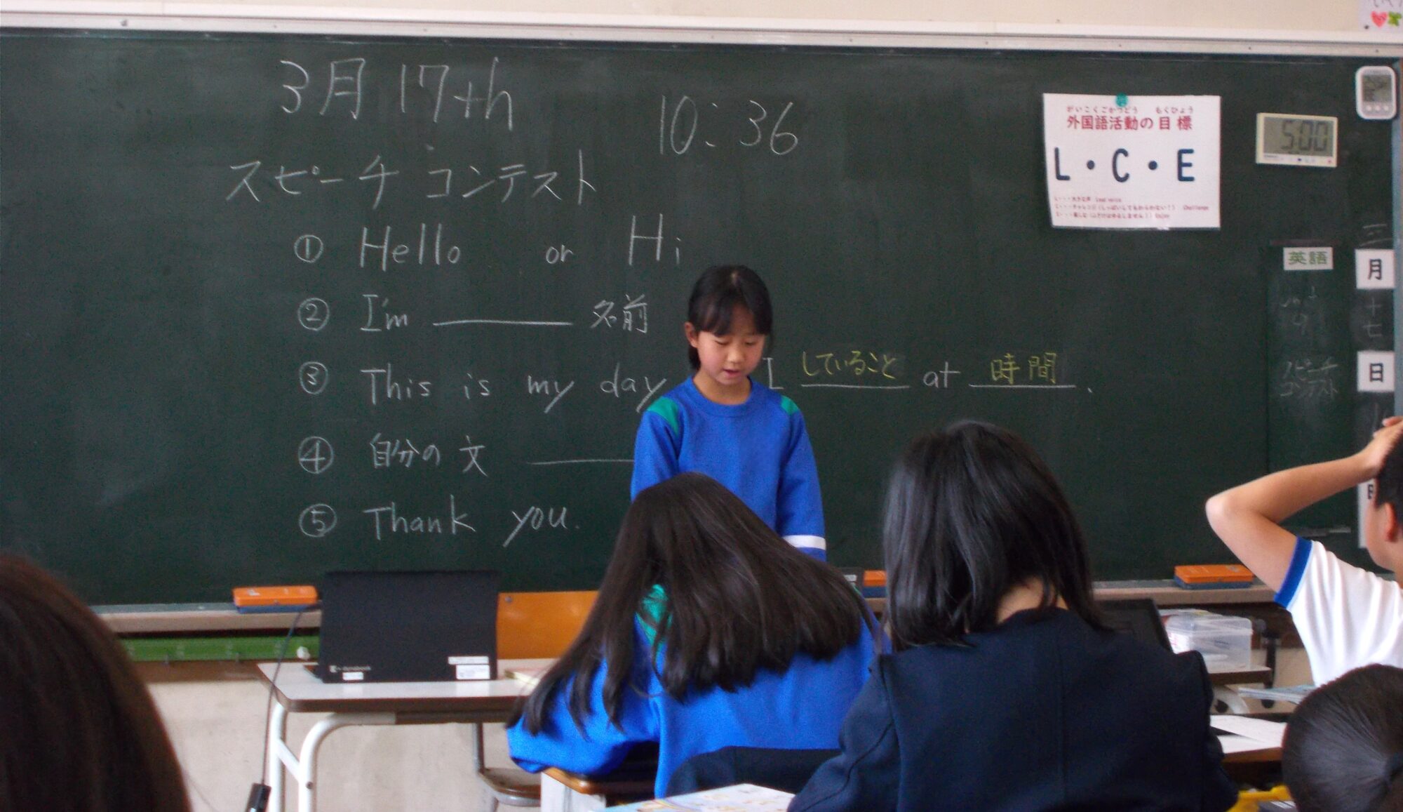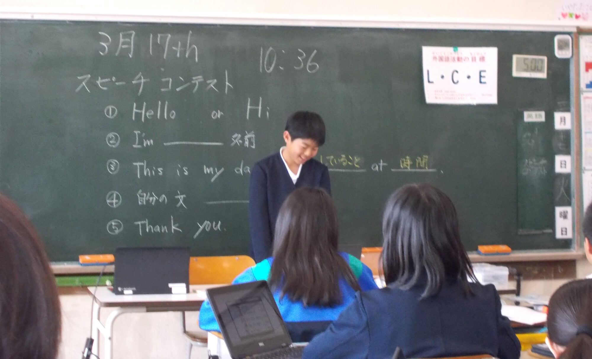 4年生が最後の外国語活動の時間にスピーチコンテストを行いました。
