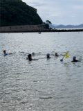 今日は本番同様ブイとブイを往復で泳ぐ練習でした。クラゲが出たり海水を飲んでしまって呼吸がしにくくなったりとハプニングもありながら、みんな最後まで泳ぎ切ることが出来ました。怖さとたたかいながら果敢に挑戦する姿は素晴らしいと思いました。みんなの声援もきっと力になったことでしょう。