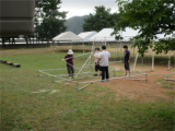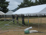今日は明日の予行にも使用する児童用のテントの設営も行われました。今年も業者の方にテント設営をお世話になりました。8つのテントを1時間半ほどで設営していただきました。補強もしっかりとしていただきました。
