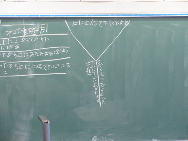 今、本校ではじっくりと考えるために「思考ツール」を使って考え方を整理するようにしています。4年生ではすでに子ども達が自然にY字のツールを使ってみんなの意見を整理していたのでした。