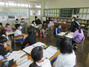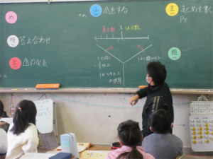 4年生の1限目は分数の学習です。その前に昨日の課題の答え合わせから…