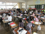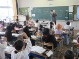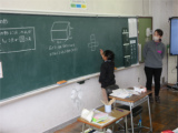 2年生の算数は立体図形。教室の裏にもたくさんの箱が並んでいました。