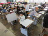 いよいよ紙が配られました。大きな厚手の工作用紙です。