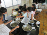 理科室から2年生の声がするので覗いてみたら、楽しそうな実験をしていました。