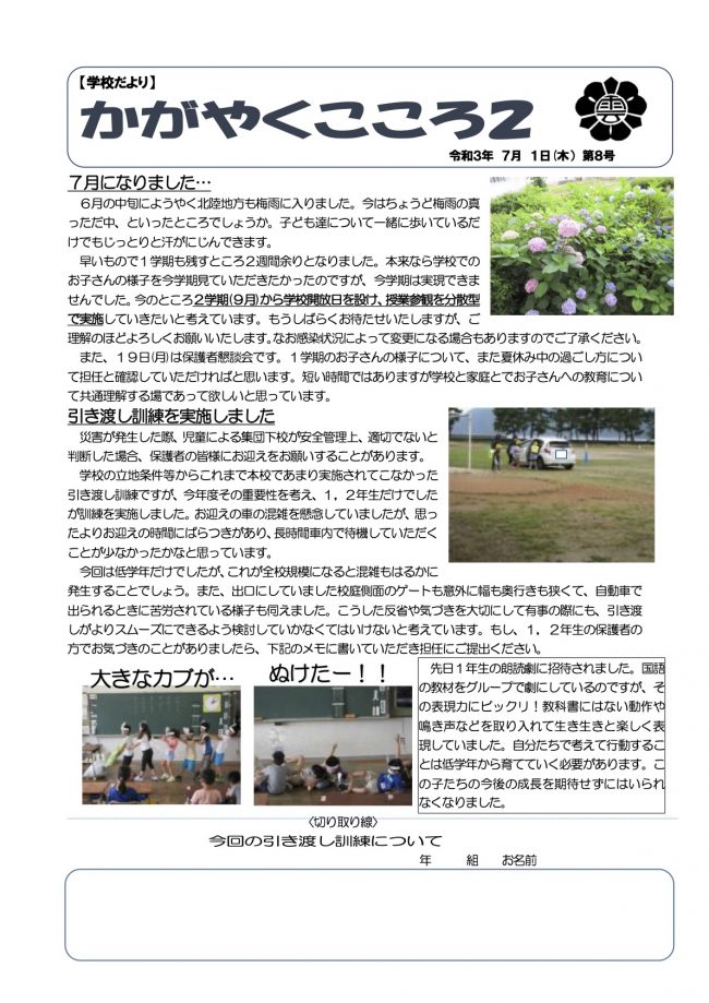 学校だより「かがやくこころ2」第8号
