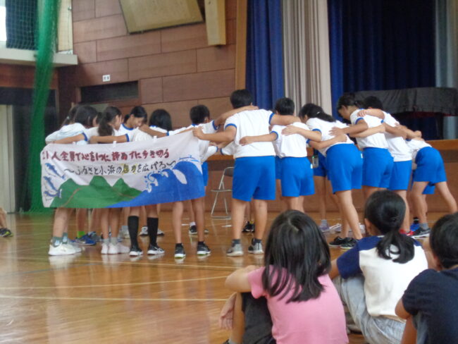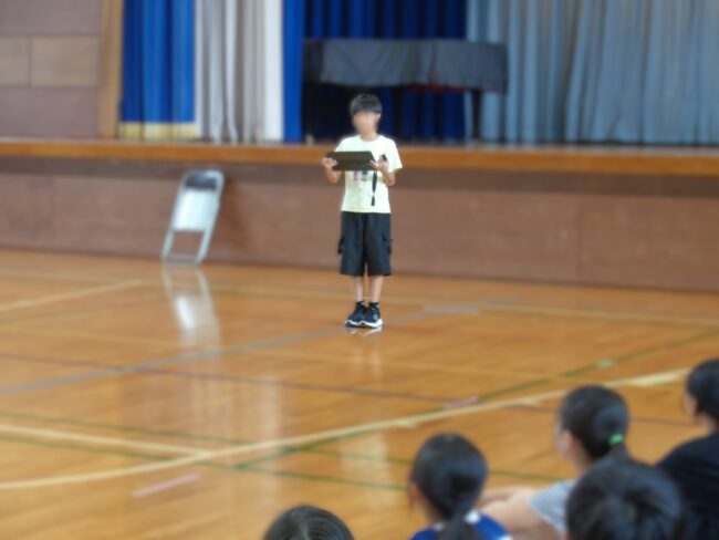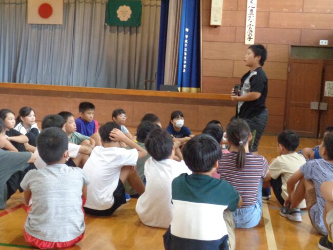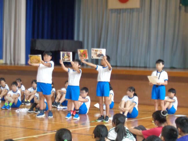 10月8日 全校集会”かたばみ集会”が開かれました。今回は、6年生から、来る17日に鯖街道踏破活動を前に、これまでの自分たちの学びについて、また、活動当日への決意、思いについて発表がありました。ここまで仲間と共に様々な学級の出来事や行事を乗り越えてきたからこそ、鯖街道踏破もみんなで成功させたいとの思いが語られました。それを聴く他学年の子供たちからエールの感想発表がありました。