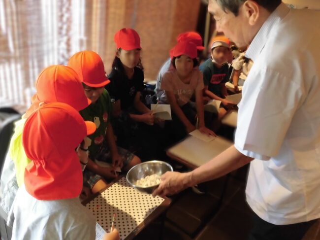 【2年生】まず、一番町の「和菓子屋さん」での見学。近くの「名水百選~雲城水」が湧いているところの見学と試飲も。そしてその後は「県立若狭図書学習センター」へ見学に行きました。