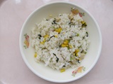 その色を表現するように、菜の花チャーハンには菜の花の緑、コーンの黄色、ハムのピンクを。