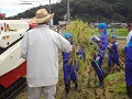 この日は朝から、20名ほどの地域のボランティアの方が、稲刈りの準備をしてくださいました。