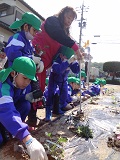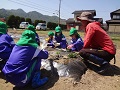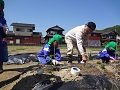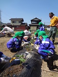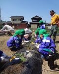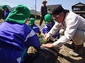 5月11日(木)学校の近くの畑で、まちづくり協議会の方4名にお世話になって、2年生が野菜の植え付けを行いました。