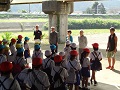 串打ちと塩のふり方を教わった後、名人が捕ってこられたアユに、1人1人が串打ちをしました。