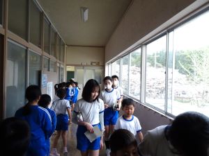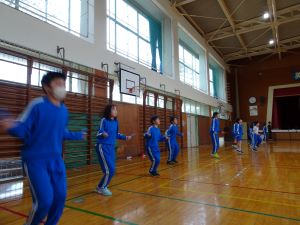 業間活動もスタート 昨日から業間活動が始まりました。 4月から11月はマラソンですが、グラウンドが使用できないときは、なわとびです。 今日は体育館と廊下でなわとび(時間跳び)を行いました。 体育館では、2・4・5・6年生が、音楽に合わせてとび続けます。 8分間跳び続けた子が13人もいました。 マラソン、なわとびで健康な体づくりをめざします。
