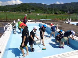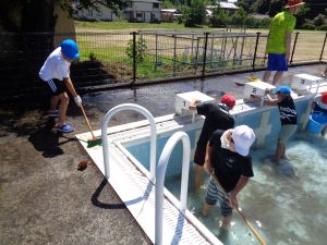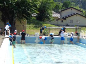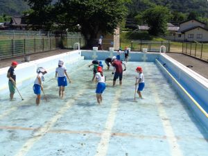プール掃除 昨日から暑い日が続いています。 今日の献立は「大豆入りわかめごはん 豆腐のごもくに いそかあえ」 掃除の後、4・5・6年生はプール掃除です。 気をつけることなど話を聞いてスタートです。 暑いため、水分補給を十分しながら行いました。 初めてプール掃除をする4年生もよくがんばっていましたし、 5・6年生も手際よく掃除をしていました。 来週から始まる水泳学習に向けて、 みんなのためにがんばってくれたことが嬉しいです。 時間内に無事終えることができました。 ツイート