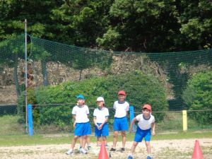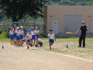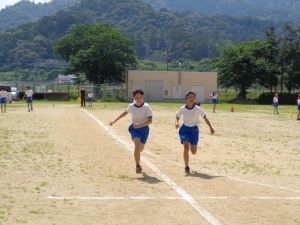 50メートル走では、友達と競いながら、