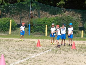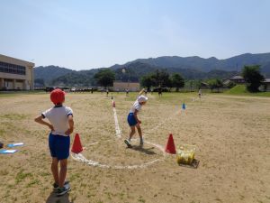 ボール投げでは、名前を伝えた後、「いきまーす」の大きな声とともに