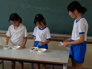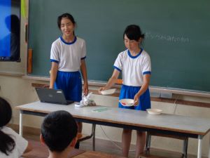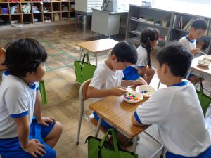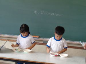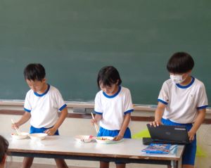 チャレンジタイムに給食委員会主催の「箸チャレンジ」がありました。