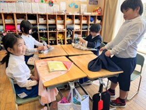 持参した「ふろしき」を使って、