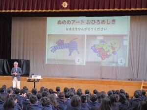 全学級、菅野様と作品、そして子どもたちを