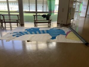作品は、児童玄関前の広い廊下に待機しています。