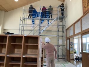 まず、足場を組んで