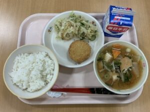 ご飯 菜の花コロッケ キャベツのおかか和え