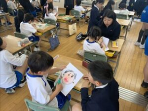 似顔絵を描くにあたり、6年生が上手に