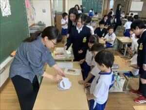 1年生の教室に6年生が来ています。