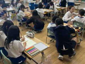 1年生の子どもたちは、クレヨンで