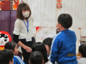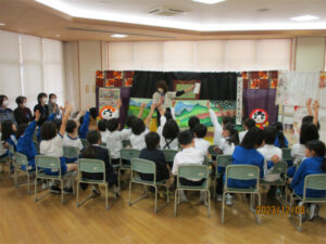 紙芝居の中で質問もあり、元気良く手をあげています。