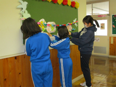 今日は、午前中、5年生と6年生が入学式の準備をしてくれました。