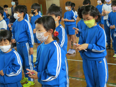 今日は、ちょっと持ちにくいですが、鉛筆を使っての「箸の持ち方」の練習タイムもありました。1年生のところに行って、優しく教える給食委員の姿がありました。箸の持ち方については、食べる前にいつも「1・2・3・・・」と号令が聞こえます。箸の持ち方練習をしているのです。美しい箸使いは、食事マナーの一つです。これからも、練習していきましょう。