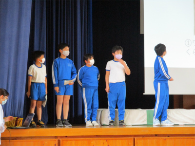 話題は、前後しますが、先週5月7日(金)の朝に行なった給食委員会主催の集会についてお知らせします。