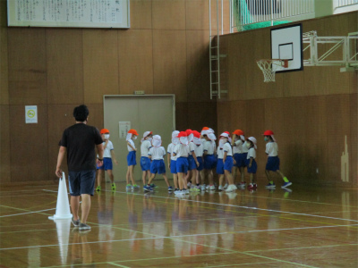 自分の泳ぐコースは分かったかな?名前を呼ばれたら大きな声で返事をすることや、友達の応援をしっかりすることも確認しました。