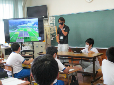 クイズに答えたり感想を発表したり、楽しい時間を過ごしました。最後に、嶺南振興局の方より、3つのお願いがありました。3つ目の「お米(ご飯)をしっかり食べる」は守れるなと確信している5年生でした。「農業に興味・関心をもつ」というお願いは、今日の授業でクリアできましたね。嶺南振興局の皆様、そして内外海小の先輩!ありがとうございました。