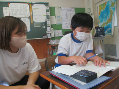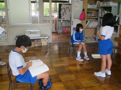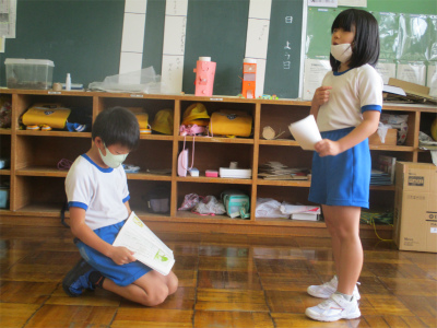 メモができたら実際に音読練習です。「ここは、動作つけよう。」「もっとゆっくり読んだ方がいいで。」名プロデューサーがいますね。「プレ発表するのですか。」と尋ねたところ、未定のようでした。