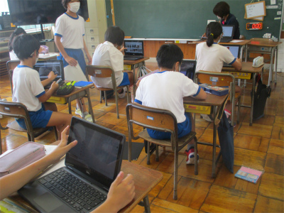 それぞれの思いでクロムブックと向き合っていました。一つの道具(文房具)になりつつありますね。