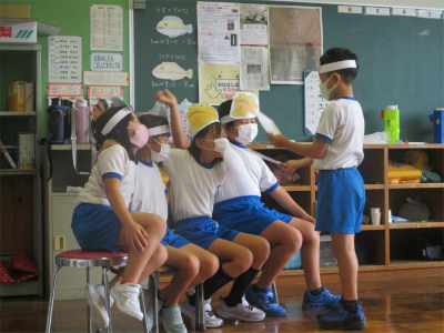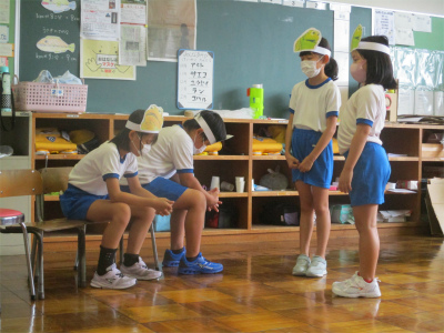 さて、2年生は国語「お手紙」の音読劇に向けて練習を頑張っています。ゴールは、11月に内外海小学校に「新入生体験入学」でかわいい後輩達(来年度の1年生)に披露するためです。