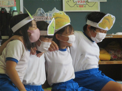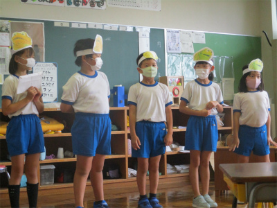 5名と少ない学級ですが、元気いっぱいです。コロナ禍なんて平気です。大きな声で「伝えよう」と気持ちがいっぱいです。
