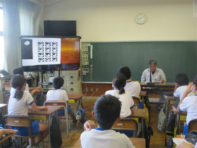 3年生は「パパがやいたアップルパイ」というお話です。6年担任の読み聞かせに、いつもと違った雰囲気の3年教室でした。