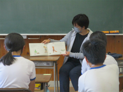 2年生は、「ねぎぼうずのあさたろう」という絵本でした。絵がとても個性的で、じっと見つめている子ども達の目もキラキラしていました。