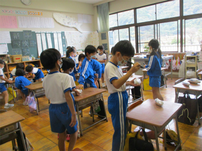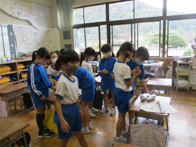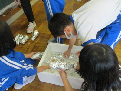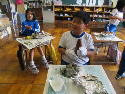 しっかりと食べていました。でも、そこは低学年です。ずいぶんと量を減らした子もいたようです。教頭先生、助っ人さん、ありがとうございました。そして、何よりもサツマイモを提供してくださった地区の方、ありがとうございました。秋を満喫した子ども達です。