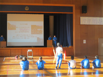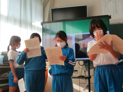 4年生の教室から、明るい声が聞こえてきました。やはり、学習発表会の練習中でした。追い込みですね。